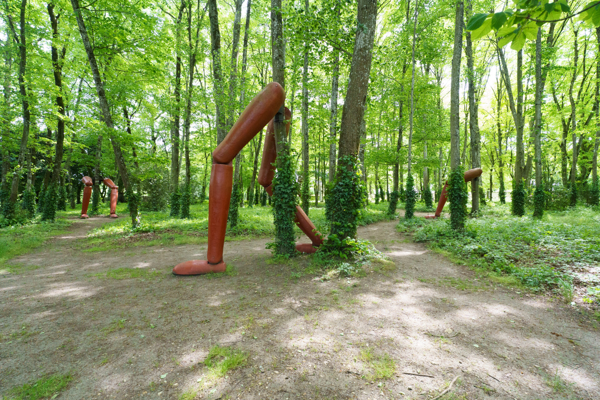 Un peu plus loin au milieu de grands arbres, c’est La Forêt qui court (1998) de Jérôme Basserode. Il s’agit là, en tous cas pour moi, de l’oeuvre signature du château du Rivau . Chacun pourra librement imaginer le destin ou le message à nous adressé par ses jambes de Pinocchio géant.