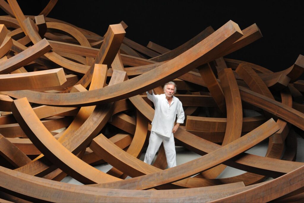 Bernard Venet est réputé pour ses sculptures conceptuelles et ses installations. À la Fondation Venet, les visiteurs peuvent découvrir une vaste gamme de ses œuvres, qui explorent les concepts de la ligne, de la forme et du mouvement. Ses sculptures en acier corten, souvent monumentales, sont conçues pour interagir avec l’environnement, créant un dialogue entre l’œuvre et le paysage. La fondation présente également des dessins, des peintures et des œuvres sur papier de l’artiste, permettant ainsi d’explorer l’évolution de sa pratique artistique.