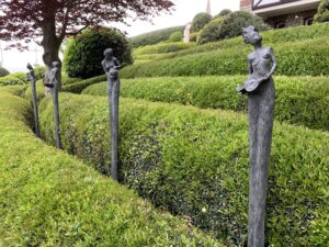 Le domaine est ouvert au public depuis 2000. Pour ce qui nous préoccupe les jardins présentent également une vingtaine d’oeuvres d’art contemporain.