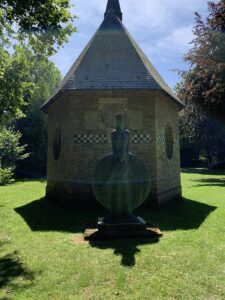 Je ne sais pas si il s’agit à proprement parler d’art contemporain à Bois Guilbert. Si je repose la question c’est que la réponse est probablement négative. Il n’empêche que j’aime cet endroit ou le propriétaire expose ses oeuvres tout au long des chemins qui traversent le parc. Et puis c’est un voisin normand il a donc toute sa place ici. « Le parc a été créé par Jean-Marc de Pas, sculpteur paysagiste, sur ses terres d’enfance, un domaine familial depuis près de 400 ans. »