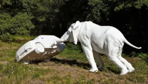 « Notre exposition a démarré en 2003, elle a apporté une véritable animation culturelle accessible à tous les publics, ceci durant cinq mois de l’année, » explique Gisèle Burel, présidente de l’association Les Entrepreneurs Mécènes. Alors là, ce fut la révélation de 2023. A une trentaine de kilomètres au nord de Rennes en lle-et-Vilaine, une ville Chateaubourg. Et dans cette ville depuis plus de vingt ans sont organisées par l’association « Les Entrepreneurs Mécènes », des expositions de sculptures permanentes ou ponctuelles dans le parc « d’Ar Milin ». On trouvera ici aussi une belle harmonie entre les oeuvres et les différents paysages, constructions et autres plans d’eau.